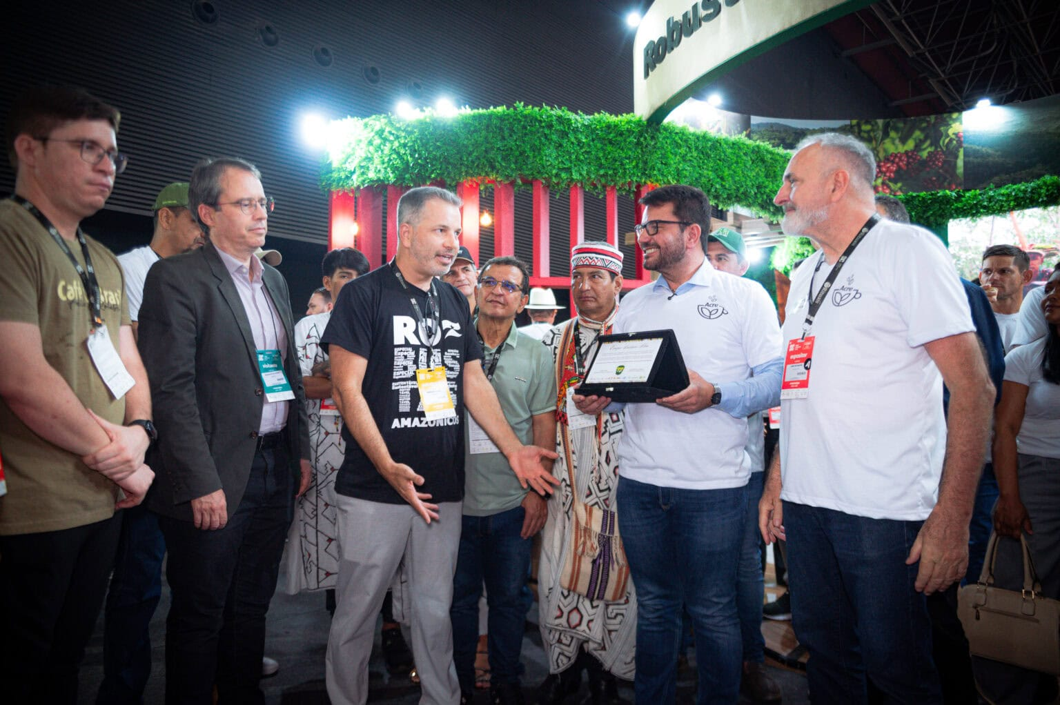 Nos dois primeiros dias, o estande Robustas Amazônicos do Acre já recebeu milhares de visitantes. Com uma comunicação que destaca a preservação das florestas e apresenta imagens valorizando os povos indígenas, o espaço tem despertado ainda mais interesse pelo café produzido no estado.