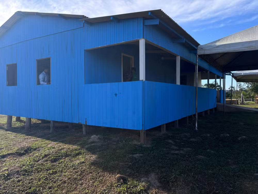 A nova escola foi construída em madeira, com paredes, piso e conta com banheiro feito em alvenaria, algo distante da antiga realidade dos estudantes.
