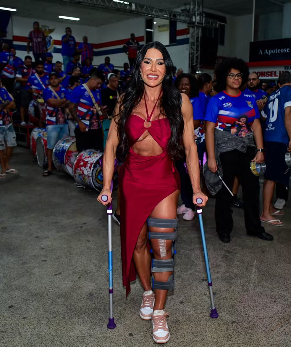 Gracyanne estava usando muletas. Ela lesionou o joelho durante o “Dança dos Famosos” e precisou passar por uma cirurgia há cerca de 15 dias.