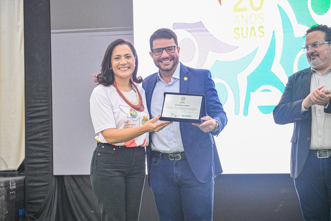 Para comemorar os 20 anos do Sistema Único de Assistência Social (Suas), o governador Gladson Camelí e a vice-governadora Mailza Assis, titular da Secretaria de Assistência Social e Direitos Humanos (SEASDH), abriram junto com o Conselho Estadual (Ceas), representado pelo presidente Gabriel Maia Gelpke, a 14ª Conferência Estadual, nesta quarta-feira, 22, momento que celebra avanços e conquistas dentro do sistema e na assistência estadual.