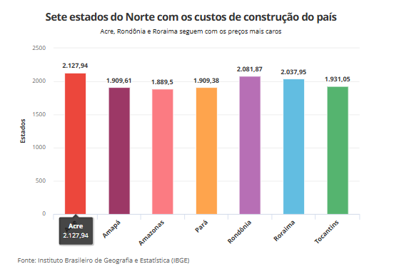 O Acre já havia liderado por três meses seguidos o ranking, entre março a maio desse ano. Retornando com o o índice de construção civil mais cara do pais em julho, e novamente desde o mês de setembro.